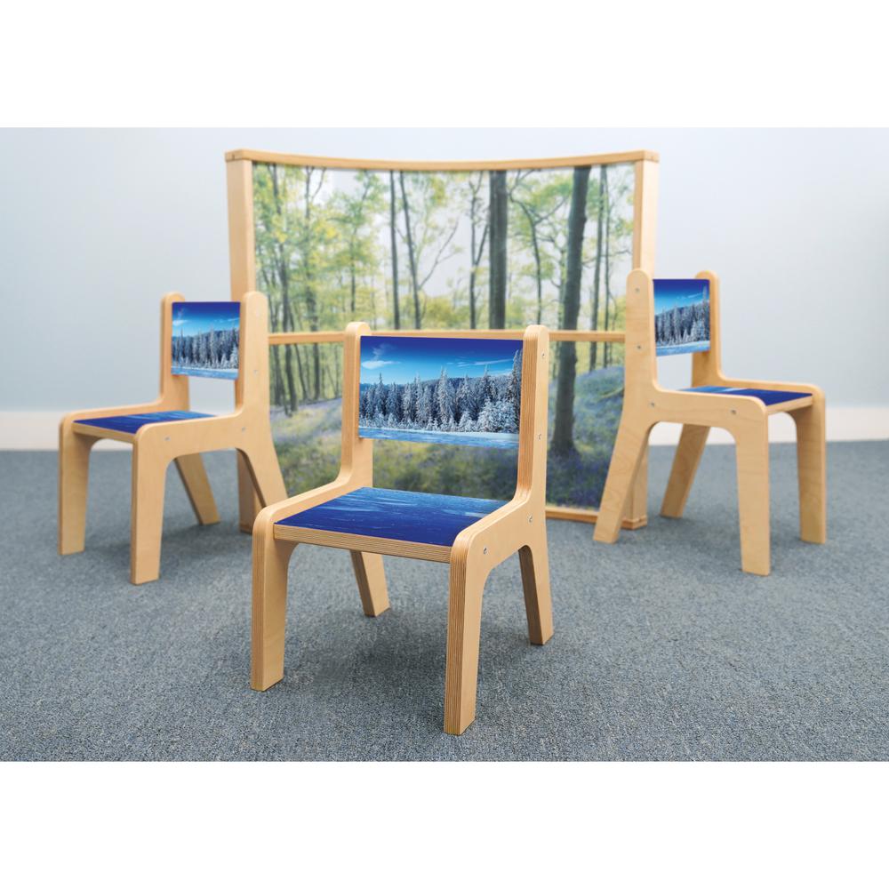 A child's chair like no other! The exclusive design evokes the winter with captivating realism and integrates perfectly with all other furniture pieces in our award-winning biophilia-inspired Nature View Collection. Create a season-themed activity area, reading space, or entire room environment! Constructed in beautiful, durable 1-inch birch plywood in safe, non-toxic natural UV finish that won't yellow and withstands rigorous use. Made in USA. GreenGuardâ„¢ Gold certified. Lifetime Warranty.