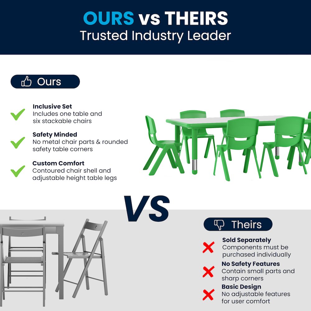 23.625''W x 47.25''L Green Plastic Height Activity Table Set with 6 Chairs