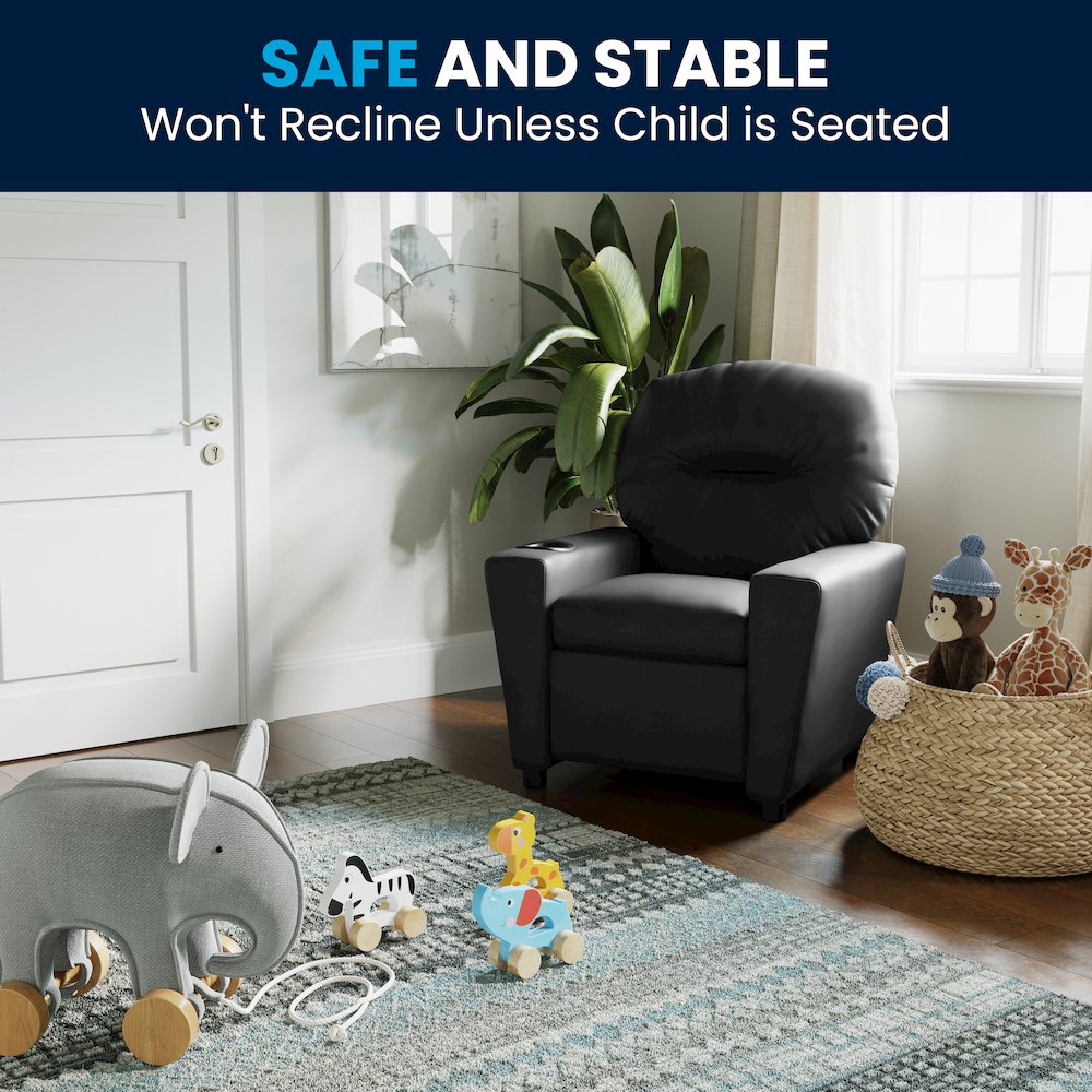 Contemporary Black LeatherSoft Kids Recliner with Cup Holder