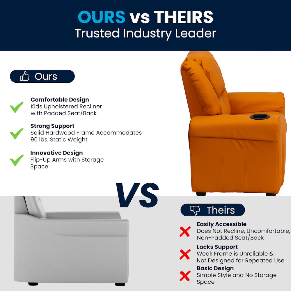 Contemporary Orange Vinyl Kids Recliner with Cup Holder and Headrest
