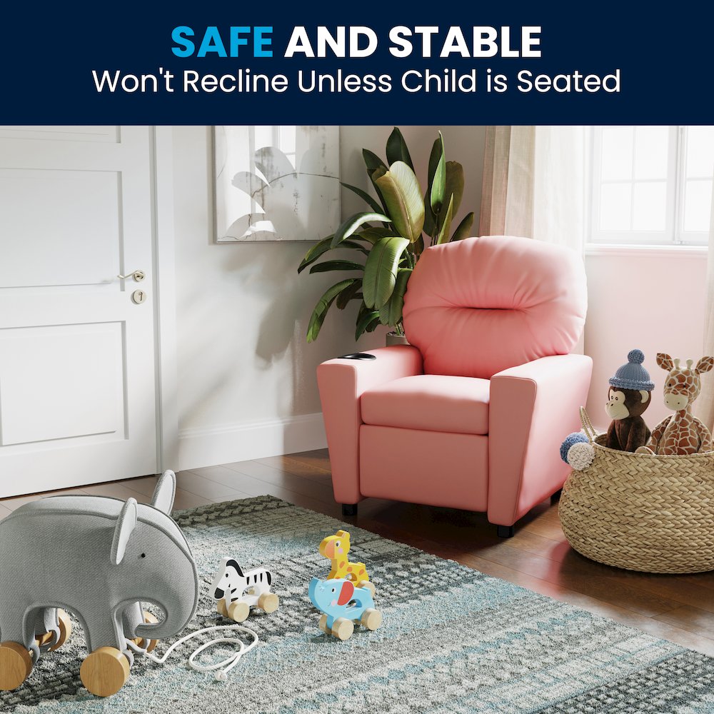 Contemporary Pink Vinyl Kids Recliner with Cup Holder