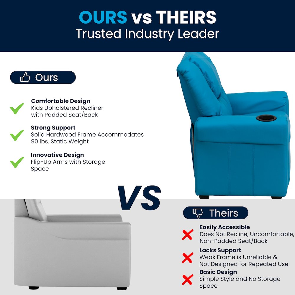 Contemporary Turquoise Vinyl Kids Recliner with Cup Holder and Headrest