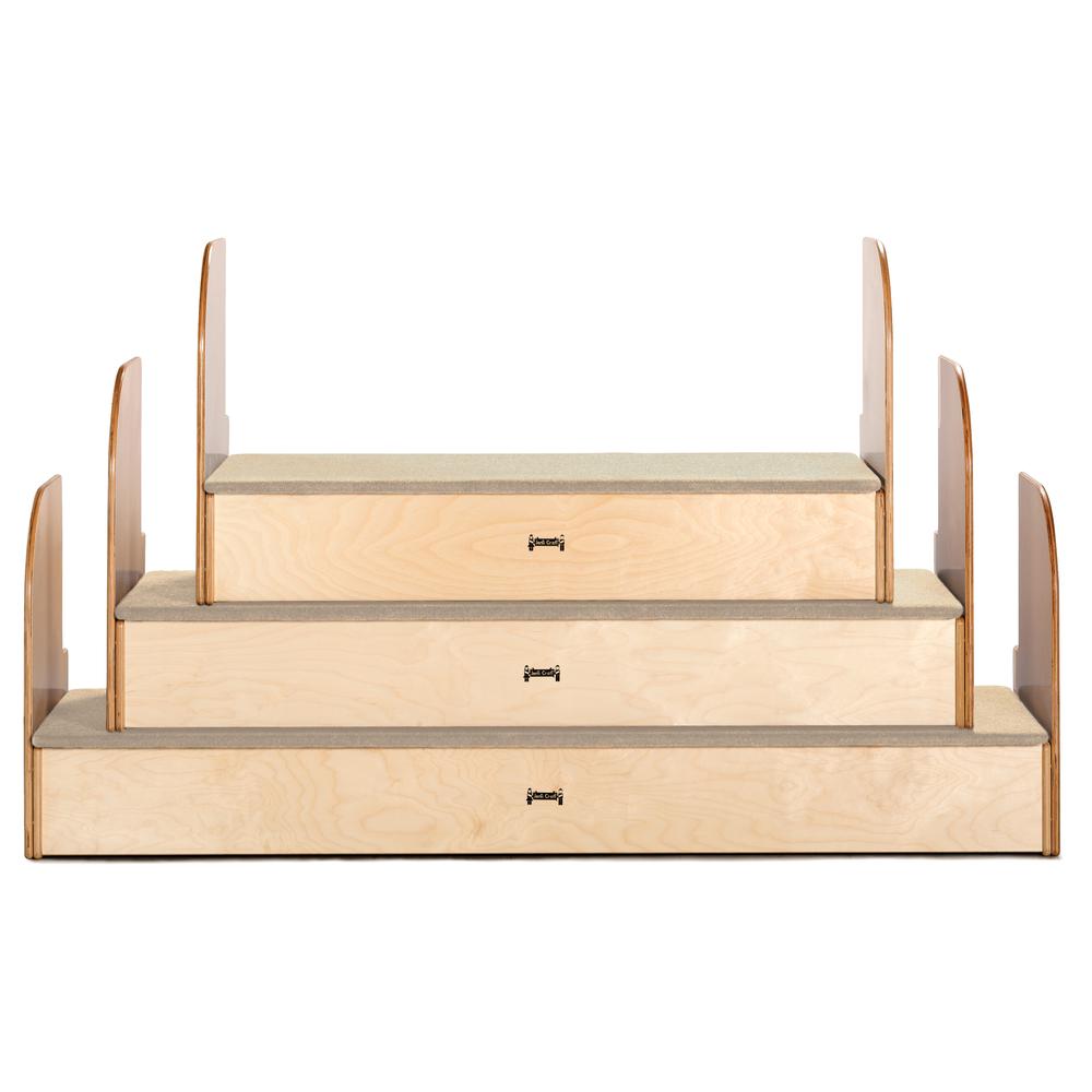 Backed by industry guidelines, the iRise® steps provide safe, sturdy and ergonomic support for children to help them reach more of the interactive whiteboard. iRise is constructed using Baltic Birch plywood that stands up to daily use. Deluxe models feature additional classroom storage area underneath the carpeted top. Included handrail for easy access and safety. Available in two heights and three widths.