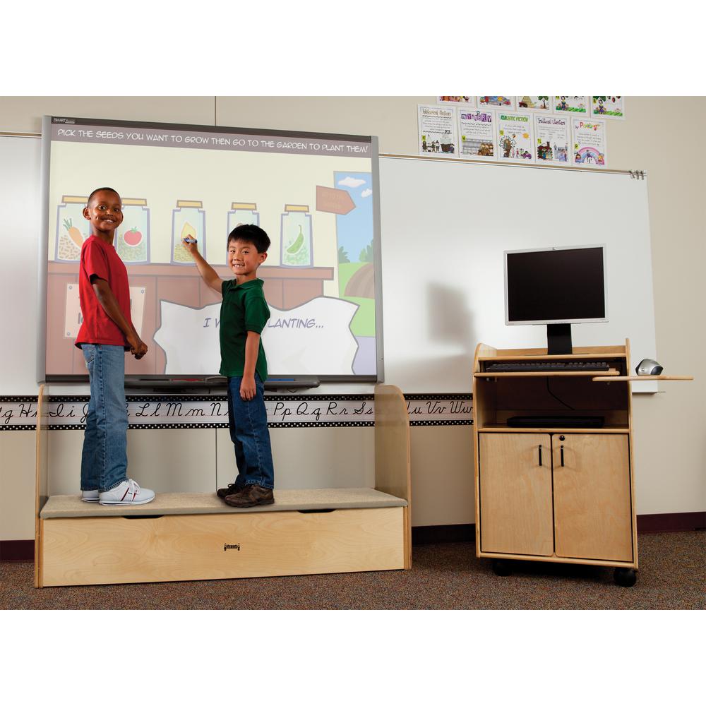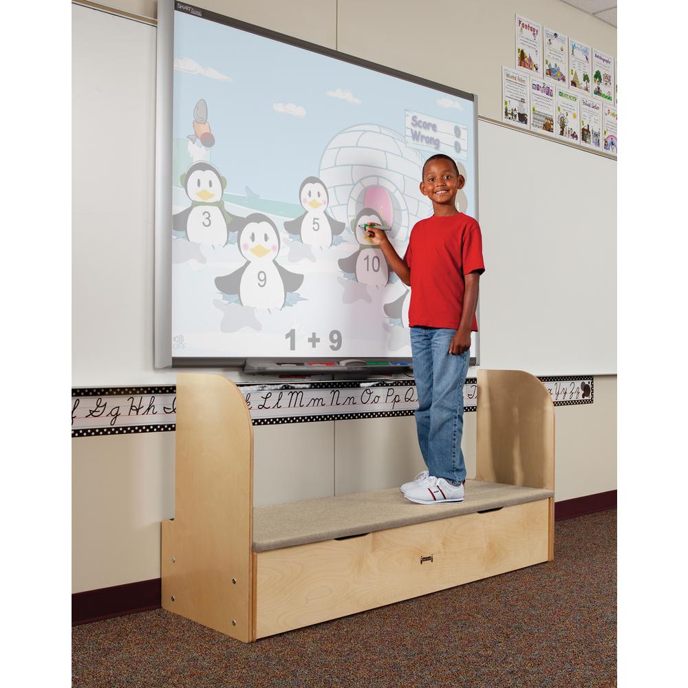 Backed by industry guidelines, the iRise® steps provide safe, sturdy and ergonomic support for children to help them reach more of the interactive whiteboard. iRise is constructed using Baltic Birch plywood that stands up to daily use. Deluxe models feature additional classroom storage area underneath the carpeted top. Included handrail for easy access and safety. Available in two heights and three widths.